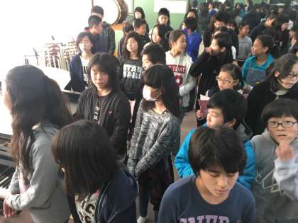 「卒業式」、「6年生を送る会」の歌の練習です。少しずつ、自分たちのパートの音程が確かなものになってきました。重なりあい、響き合う歌に仕上がればと思い、さらに練習を重ねていきたいと思います。