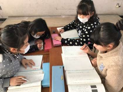 国語科の学習で、筆者の考える「想像力のスイッチを入れよう」とはどういうことなのか、本文を基に班で話し合いました。