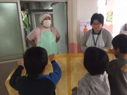 そして最後にいつもおいしい給食を作って下さっている給食調理員さん,栄養教諭の先生に感謝のお手紙を渡しました。
