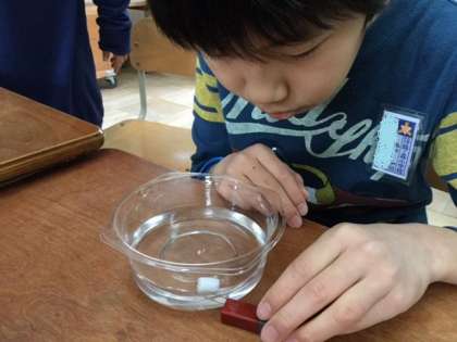 今日は離れていても鉄を引きつけるのか水の上にクリップを置いて実験してみました!