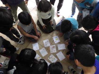 前日国語の時間に作った音訓かるたで遊びました!班対抗かるた大会!