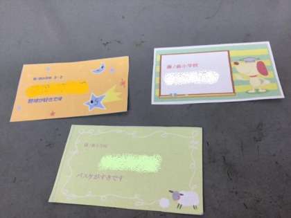 最後に学習のまとめとして,学校名と一言コメント入りの名刺を作りました!