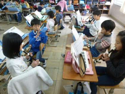 合わせるのが難しいですが,そろった時,楽器と楽器が合わさった時には,「きれい〜」