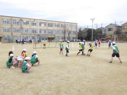 今日から体育ではサッカーの学習を始めています。今日は準備の仕方やゲームの進め方,チームの様子を確認しています。