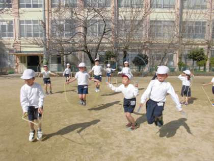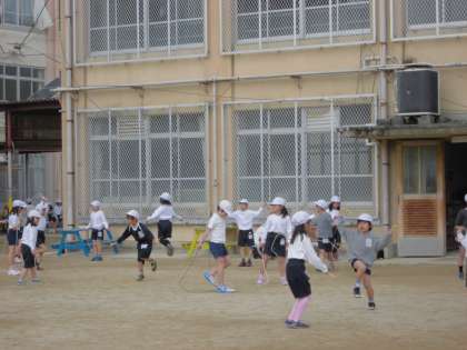 体育科では縄跳びをしています。子どもたちは,前回りや後ろ回りなど自分のできる飛び方だけでなく,新しい飛び方にも進んで挑戦しています。