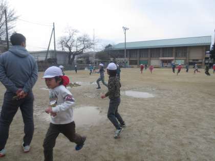 運動委員会のお姉さん,お兄さんが,一年生のためにケイドロ大会を開いてくれました。
