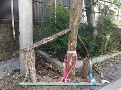 木の形や向きから、アスレチックをイメージしました。だから、あみやすべり台をつけました。つくっているうちに、つくっている場所の設定が浮かんできました。「海」です。また、つくりながら色々なことが思い付いたので、どんどんつくりかえていきました。変身させる時、小人が遊ぶような所を想像しました。「自分も遊ぶ」という気持ちでつくりました。