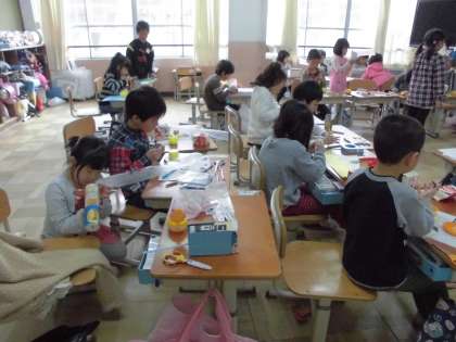 「公園で,犬がたくさん集まってきたよ!」「鼻の長いワニさんになったよ」と,子どもたちは,ふくろを膨らませながら,でてくるものを考えていました。
