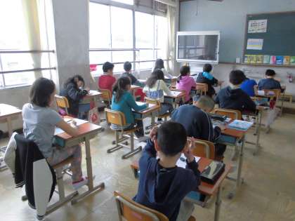 学習の始めは,4年生までに学習した計算や漢字の確認テストをしました。