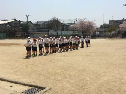 残念ながら雨のため、記録をとることができていなかった50mの記録を計測しました。並び方、話の聞き方、とてもよかった!走りも、よかった!