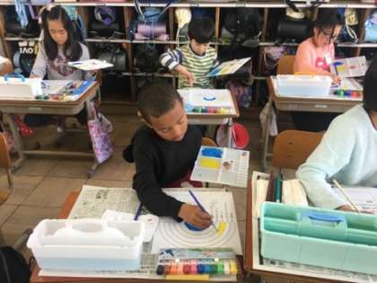 絵具の使い方を学習しました。「ひっせん」や「ぱれっと」などの基本的な使い方は、これからの作品づくりにい欠かせません。しっかり覚えていきましょう!
