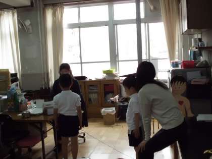 今日は,みんなで初めて保健室へ行きました。