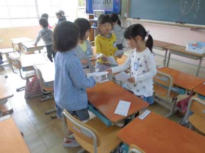 自分の名前の練習をして,めいしを作りました。