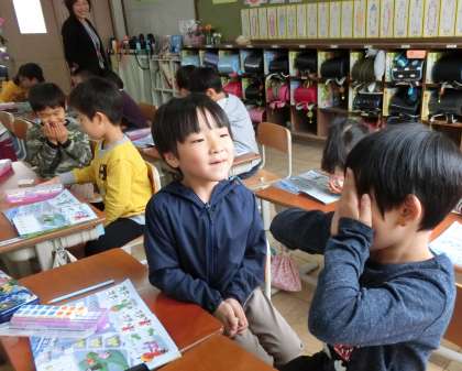4はいくつといくつにわけられるか,5はいくつといくつにわけられるかをゲームで学習しました。ペアの子と楽しく学習しました。