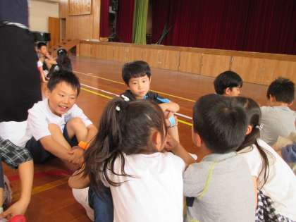 1年生に「あなたのお名前は?」と聞いて,話しやすい雰囲気を上手につくっていました。