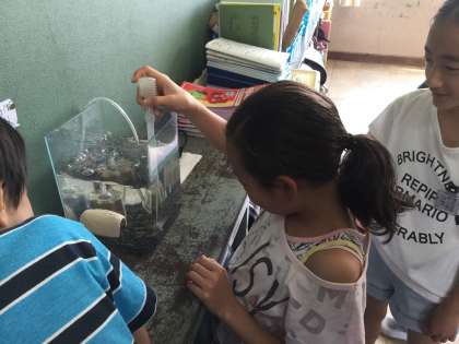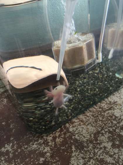 教室にウーパールーパーがやって来ました!生き物係の子どもたちが中心になってお世話をがんばっています。手のひらをパーに開いて泳ぐ姿がとてもかわいいです☆