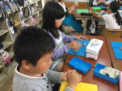 久しぶり?に手にする粘土の感触。自然と笑顔になりますね。