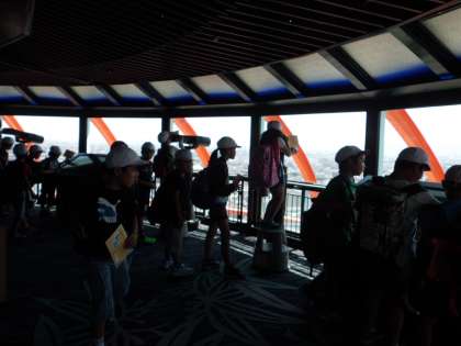 京都タワーでは、「え?ここが京都タワー?ここから入るの?」展望台では、「藤ノ森小学校どこかなぁ。」「中央郵便局の屋上にたんぽぽがきれいに見える!」など。