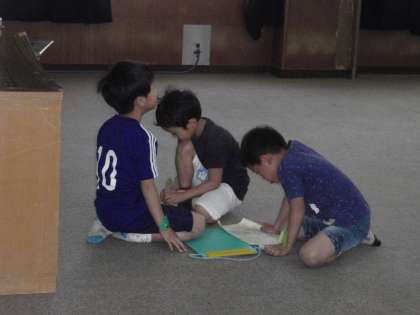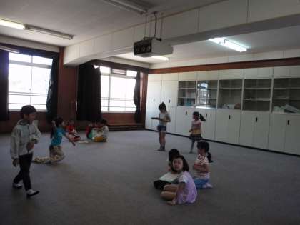 「ここは視聴覚室だよ。ビデオが見られるよ。」と2年生。「あっ!!ぼく,前,ここに来たことあるよ!」と1年生。探検が進むにつれて,会話もどんどん増えていきます。