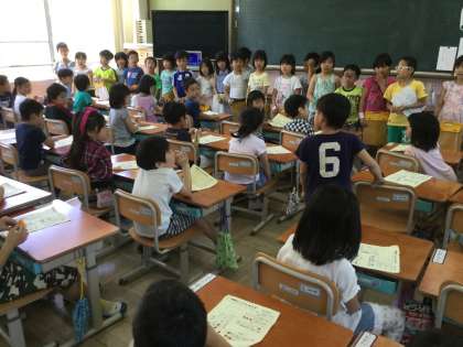 中間休みを一緒に遊んだ後は,1年生の教室にもどり「終わりの言葉」を言いました。