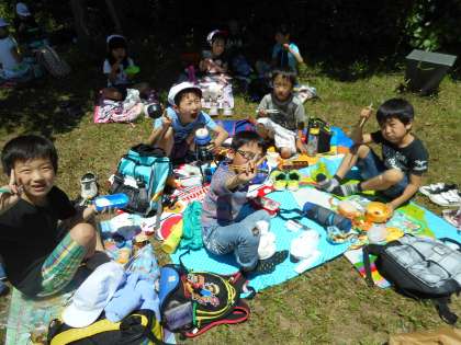 遊具や花摘みを楽しんだところで,お昼の時間です。