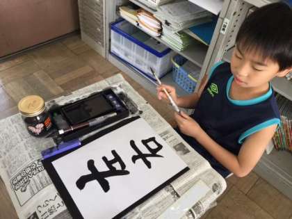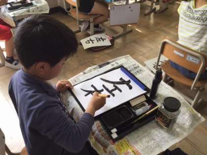 筆順の違いや2文字のバランスに気をつけながら書きました。左と右では縦画や横画の長さが違うなど違いてバランスよく書こうと頑張っていました。