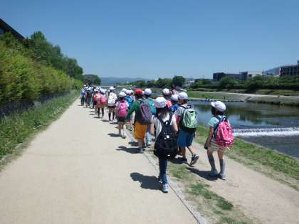 鴨川を歩いていると気持ちがよかったです。少し暑いくらい・・・。飛び石だって!落っこちるなよ!