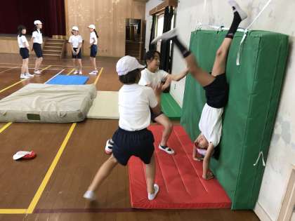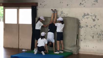 6年生 体育「マット運動」考えて工夫して