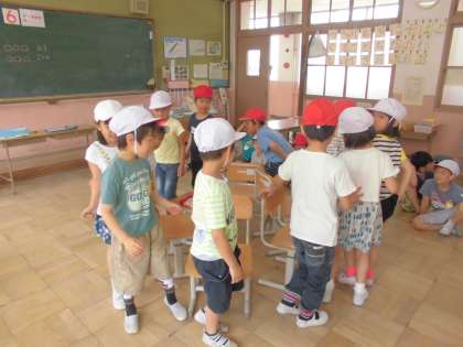 6はいくつといくつになるのかを,いすとりゲームを通して学習しました。