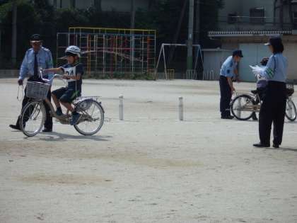 警察官の方に、ブレーキの握り方や停まったときに左右どちらの足をつけばよいかなど、自転車の乗り方についてたくさん教わりました。