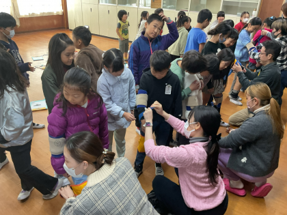 今回の授業では、全員が高齢者体験をしました。体に色々なものをつけたり、背負ったりして年をとると体を自由に動かすことが難しくなることを知ることができました。