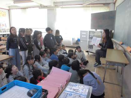 読書週間の取組の1つとして、他の学年の先生が3年1組に読み聞かせをしにきてくれました。様々な取組を通して、読書をこれからも楽しんでほしいと思います。