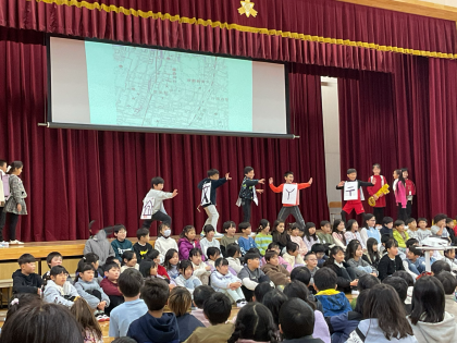 3年生の学習発表会がありました。国語科で学習した『まいごのかぎ』を劇にして発表しました。国語科の学習の成果だけでなく、社会科や理科、音楽科の授業で学んだことを劇の中に入れて伝えました。