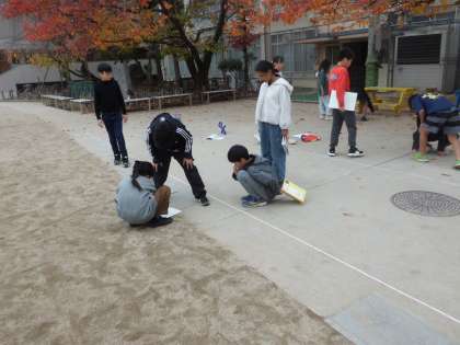 自分の歩幅を平均で出して、興味のあるところの距離を歩幅からわり出す学習をしました。