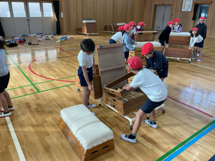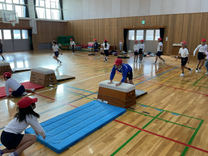 体育科の授業では、「とび箱運動」の学習が始まりました。今日のはじめの学習では、単元のねらいと進め方について確認をしました。