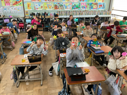 みんなでビンゴゲームをしたり、おりがみでクリスマスの教室飾りを作ったりして楽しみました。教室も子どもたちの気持ちもクリスマスに向けてでわくわくするものになっています。