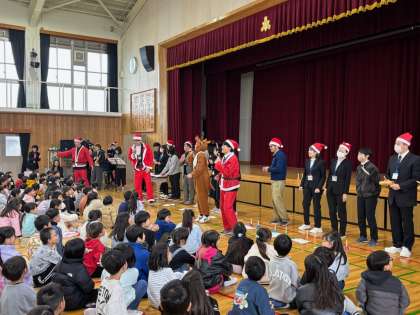 実は周到に準備された、教職員のサプライズ企画。子どもたちが喜んでくれるだろうか??と思案に思案を重ねた校長先生の思いを乗せて、届け!藤ノ森のハーモニー!!