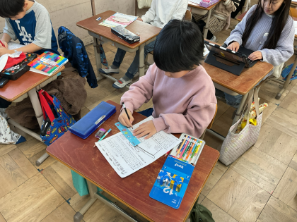授業では、3学期の目標を考えて書きました。学習のことや習い事のことなどたくさんの素敵な目標を子どもたちは考えていました。冬休み明け初日のやる気いっぱいの気持ちをこれからも大切に4年生に向けて過ごしていってほしいです。