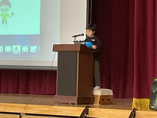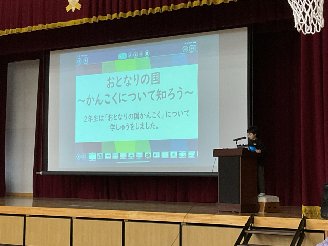2年生は「おとなりの国」のテーマで、韓国について学習したことを発表しました。