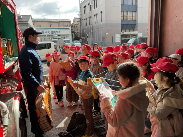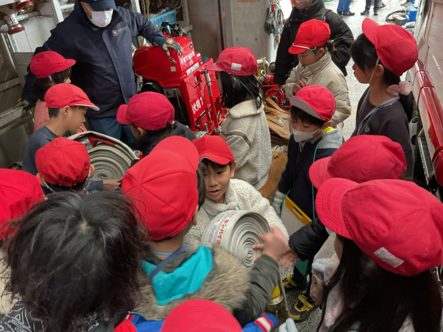 普段、地域で見かけることのある消防車を目の前で見ることができて子どもたちは大喜びでした。