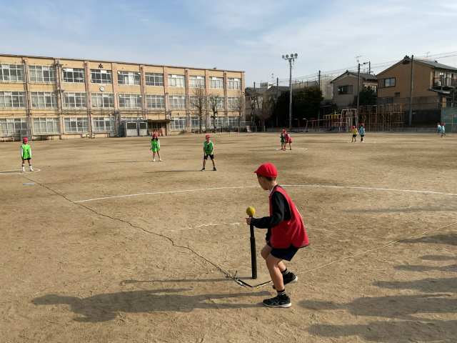 3年生の子どもたちにとって、体育科の授業でベースボール型の学習をするのは初めてですが、ルールやゲームの進め方に慣れ、楽しむことができるようになってきました。