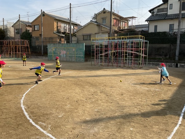 今、体育科の授業ではハンドベースボールの学習をしています。