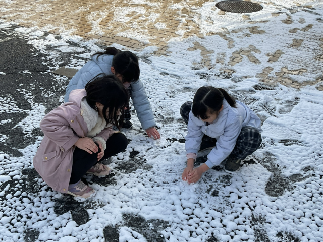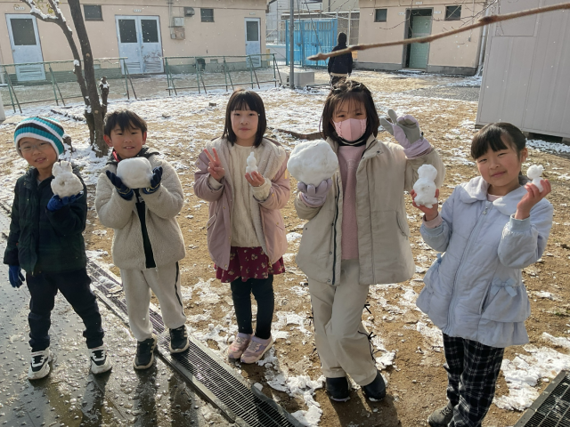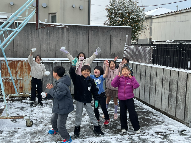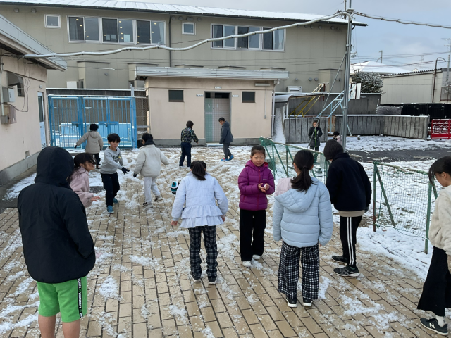 子どもたちは、たくさんの雪で大喜び。みんなで運動場へ出て雪遊びを楽しみました。1年に1度あるかどうかの京都市の積雪を満喫することができました。