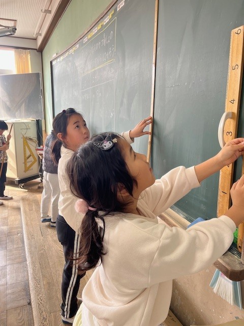 みんな一生懸命「1m」のものさしを使ってさがしていました。