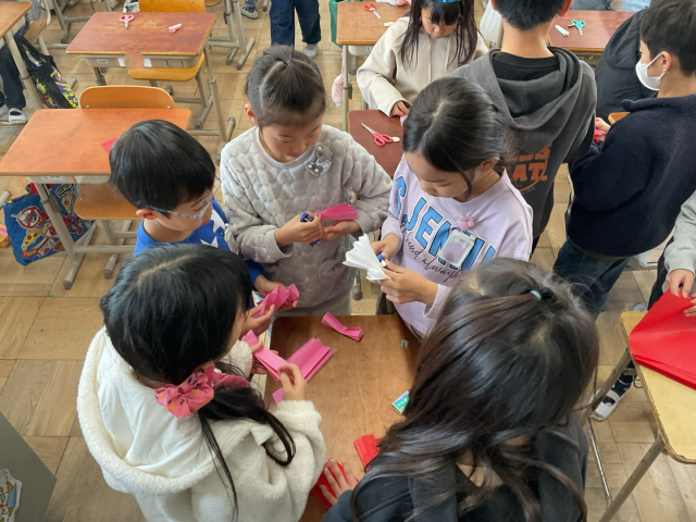 おはながみを使ってお花をたくさん作りました。「6年生のために…」を合言葉に子どもたちは、やる気いっぱい。素敵な掲示物を作ることができました。6年生に見てもらうのが、今から楽しみです。