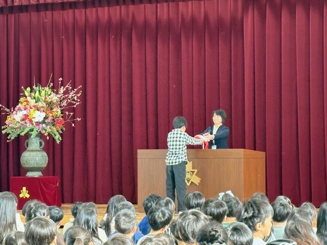 全校を代表して修了証書をもらったり、見守り隊の人たちに感謝の言葉を述べたりしました。