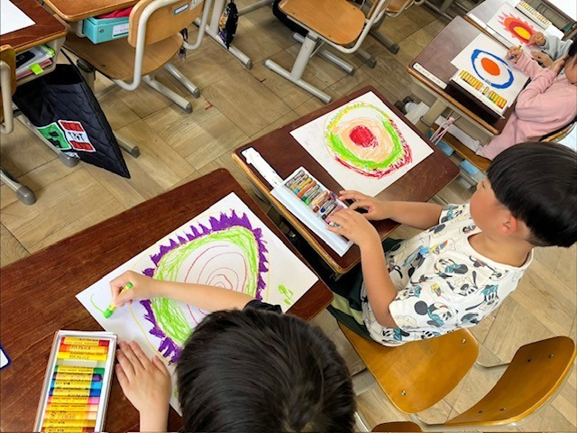 図画工作で「どんどんかくのはたのしいな」の学習をしました。