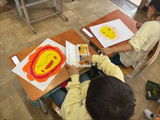 「ぼくの・わたしの おひさま」を楽しくかくことができました。