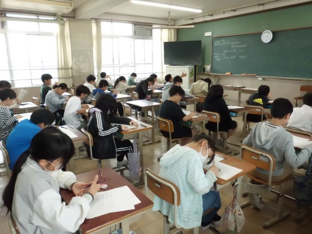 子どもたちは、国語・算数の問題に最後まで集中して取り組んでいました。