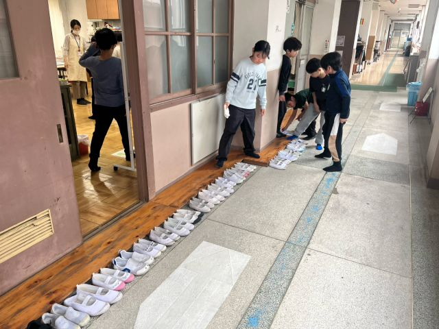 視力検査のため、保健室へ。保健室に入る5年生の子どもたちの様子を見ていると、当たり前のように上靴をきれいに並べる姿がありました。子どもたちの中で、このようなことが当たり前になっていることがとても嬉しくなりました。上靴をきれいに並べる行為は、心を整えることにつながります。